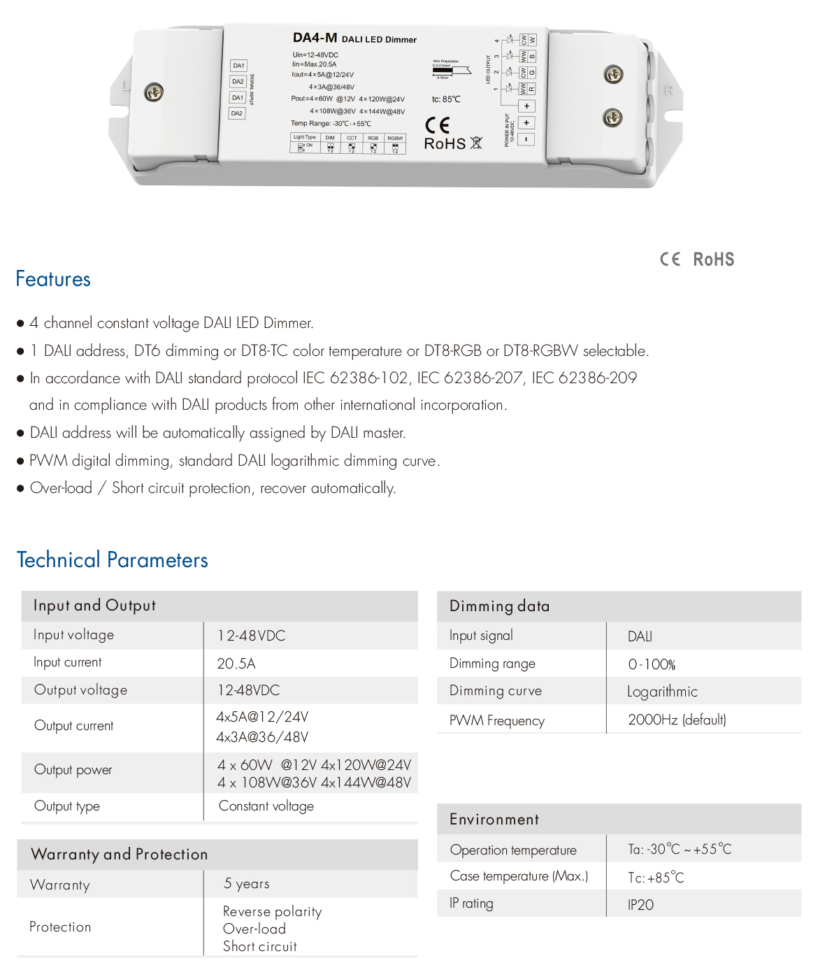 DA4-M RGB RGBW+CCT led DALI controller