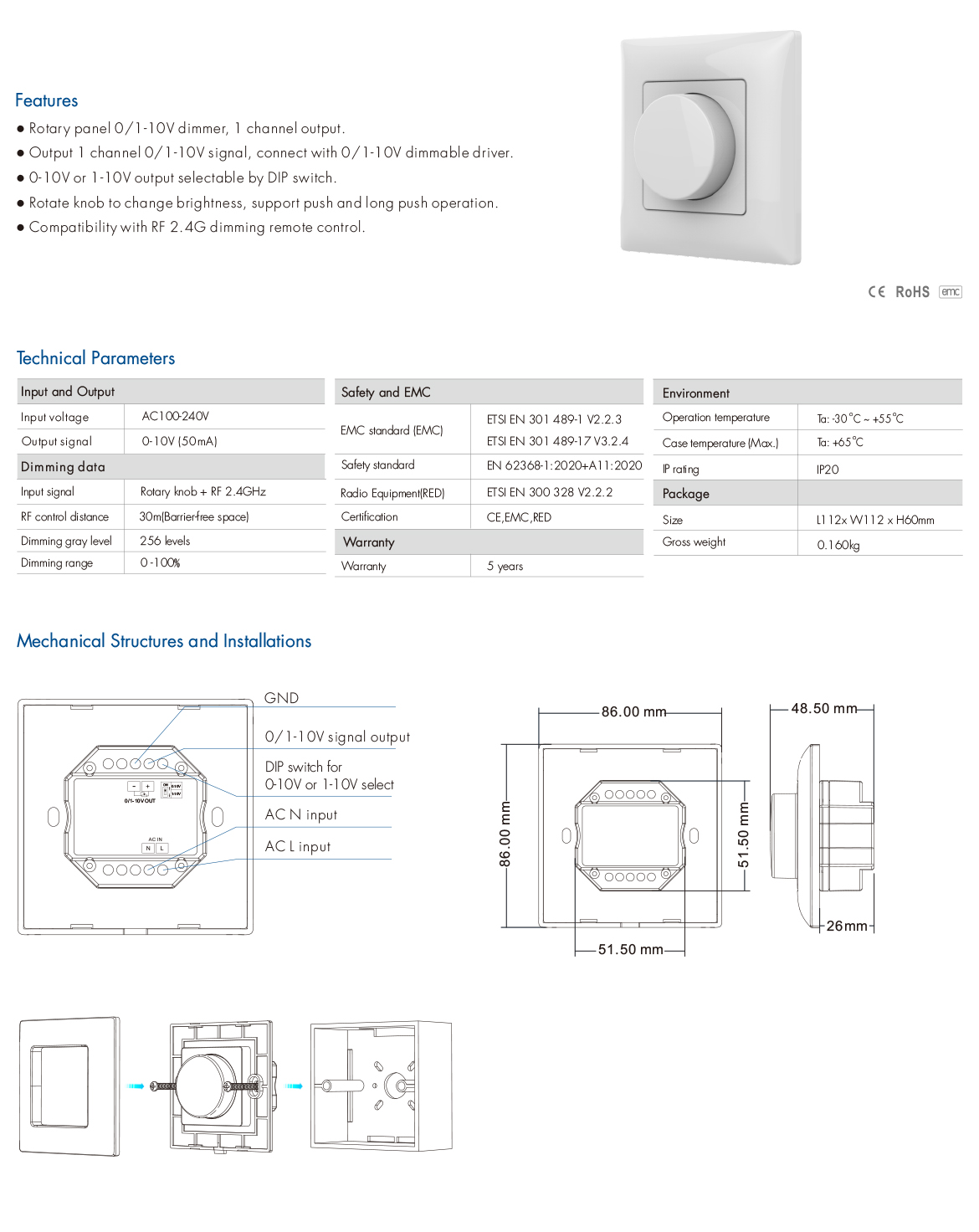 KL Rotary 0-10V LED Dimmer for single color led Controller