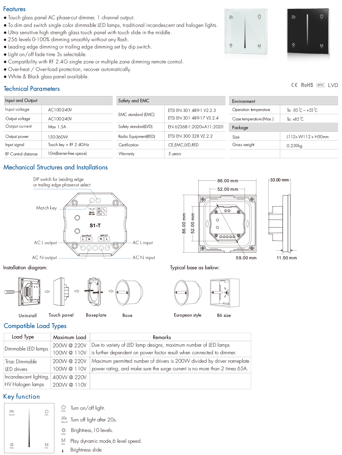 S1-T AC Triac RF Dimmer