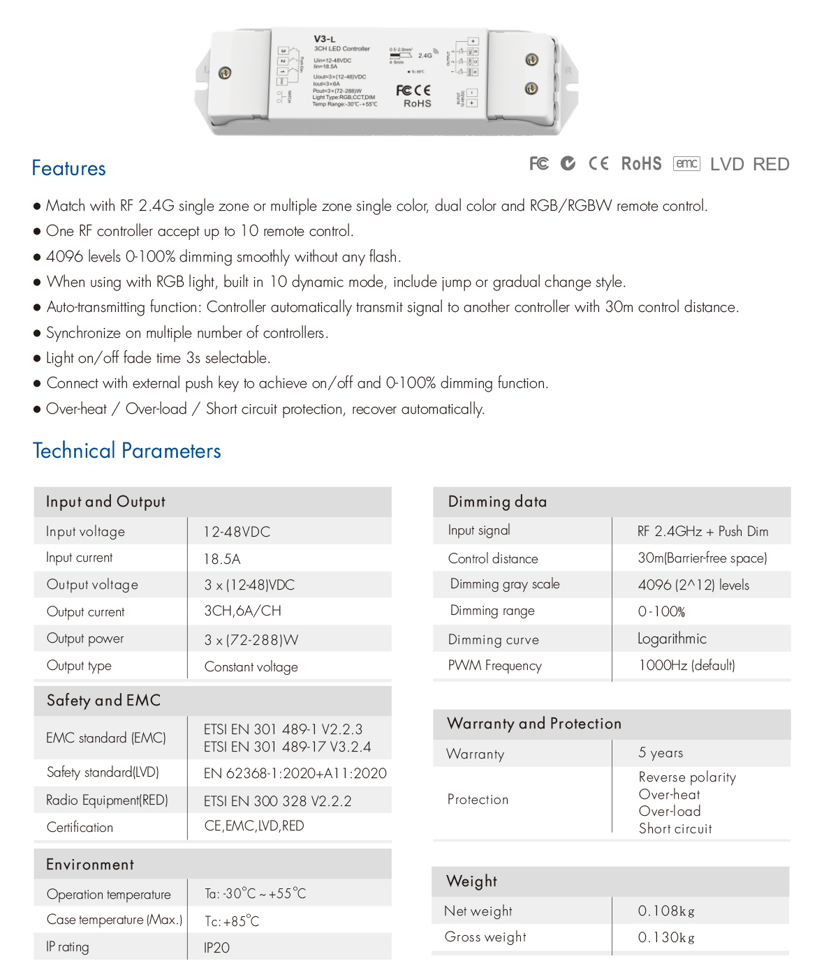 V3-L RF RGB Controller