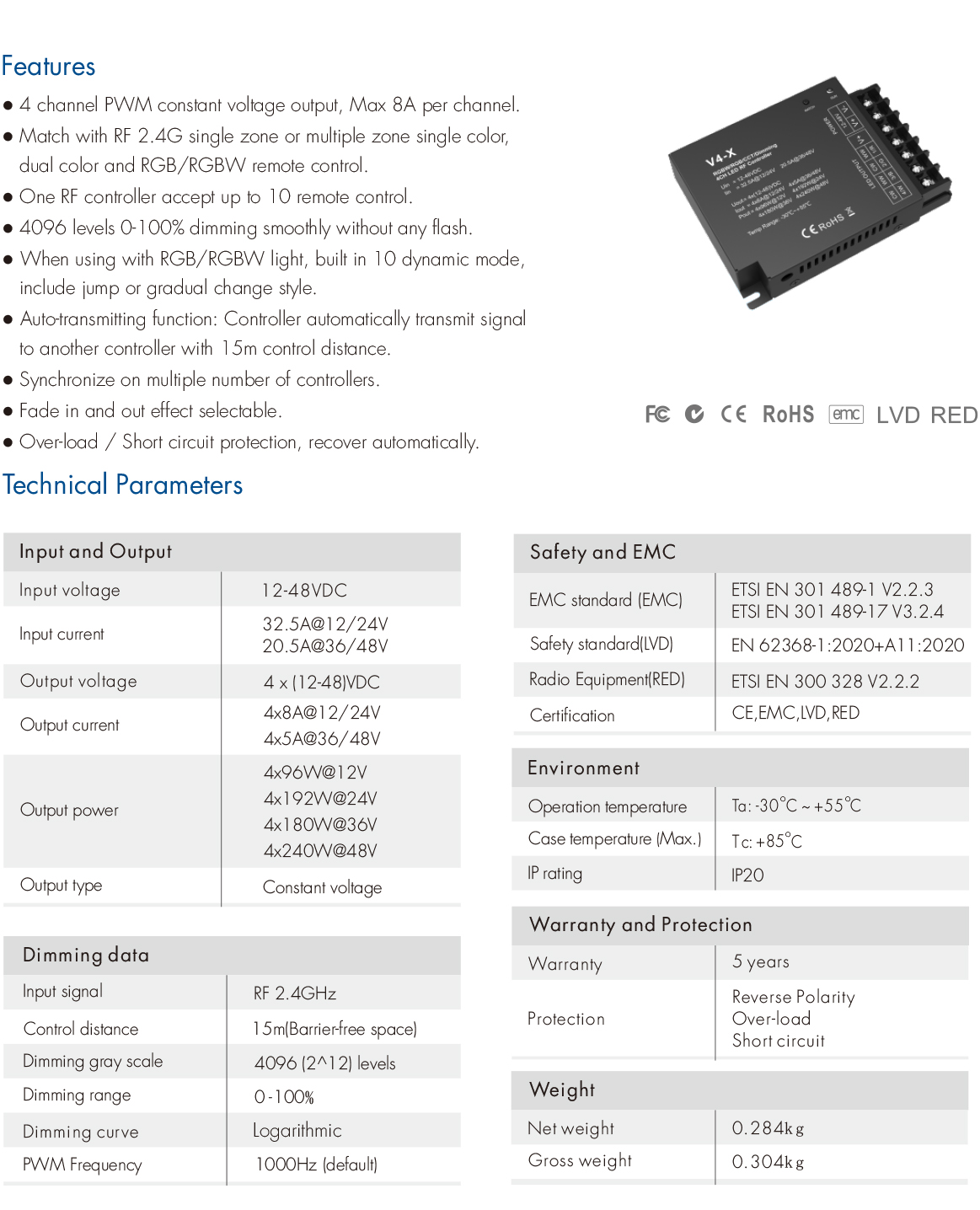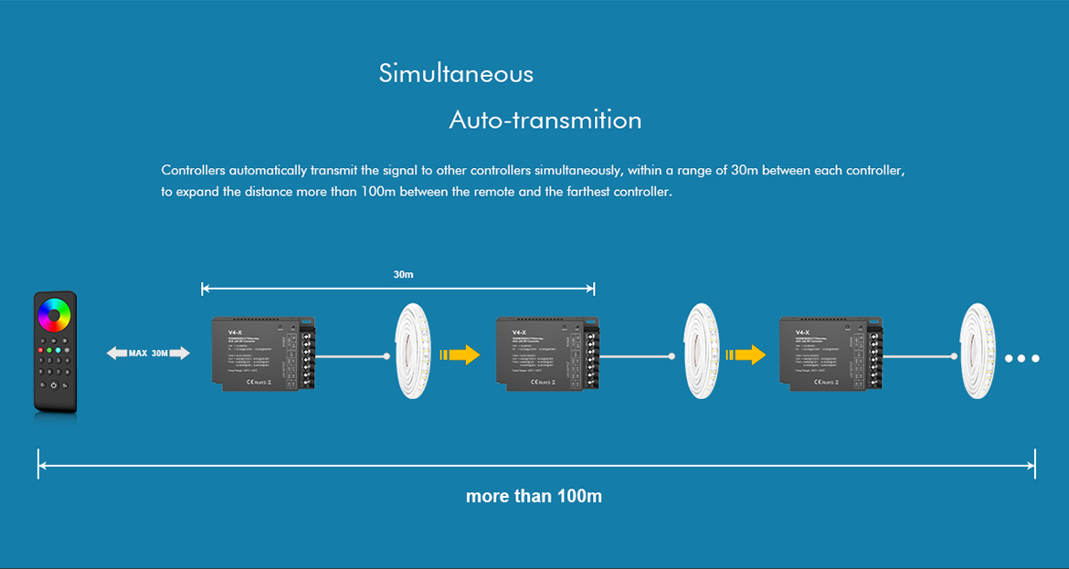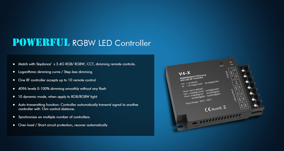 V4-X High Power RF Dim/CCT/RGB/RGBW 4-In-1 Controller